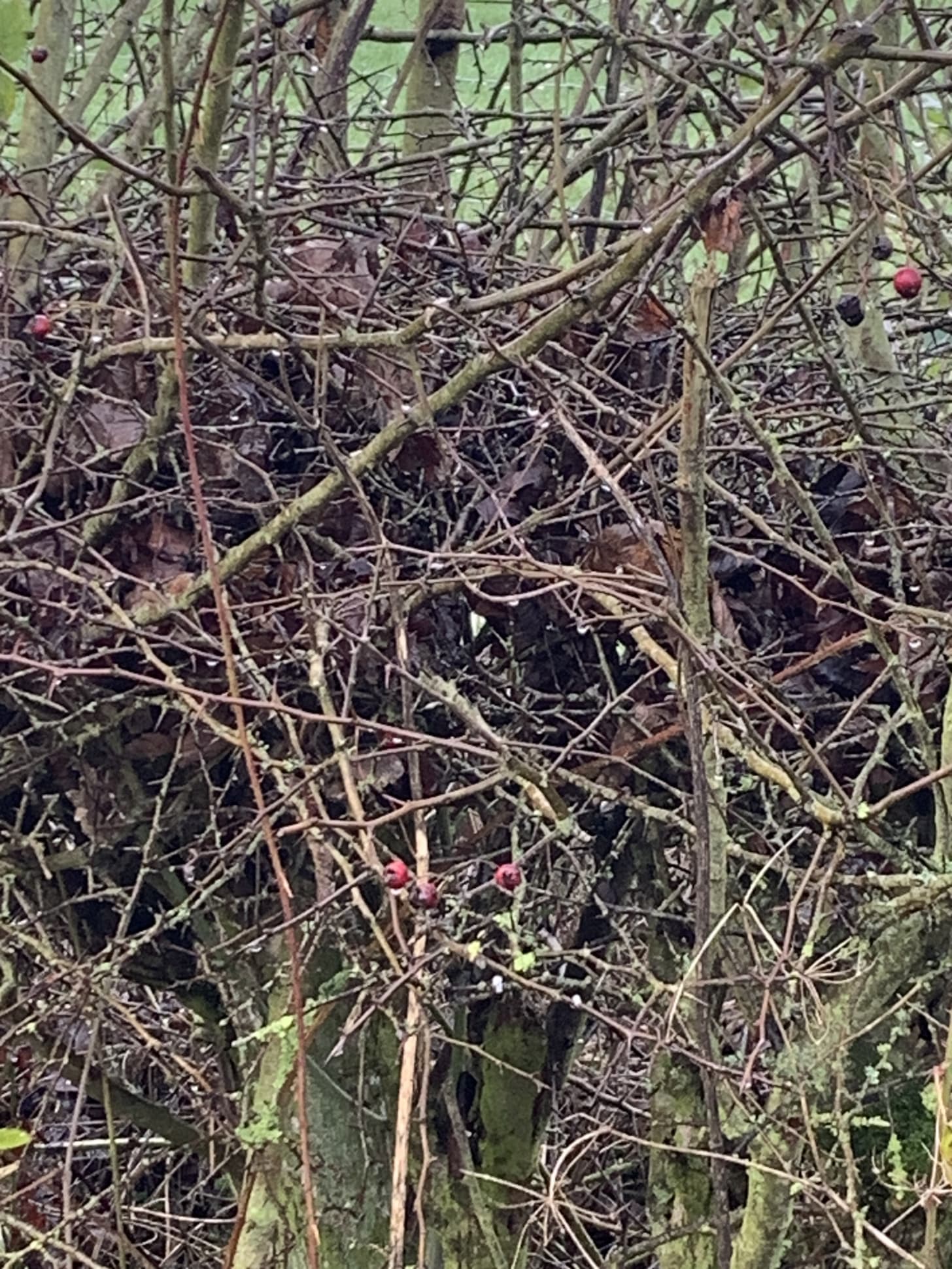 In the bird garden everyone’s fighting for leftovers. Blackbirds and song thrushes daily scour the tree for mushy crab apples. A far cry from the abundance of yellow fruit which the tree was laden with in autumn. Failing that they raid the holly bush for berries.