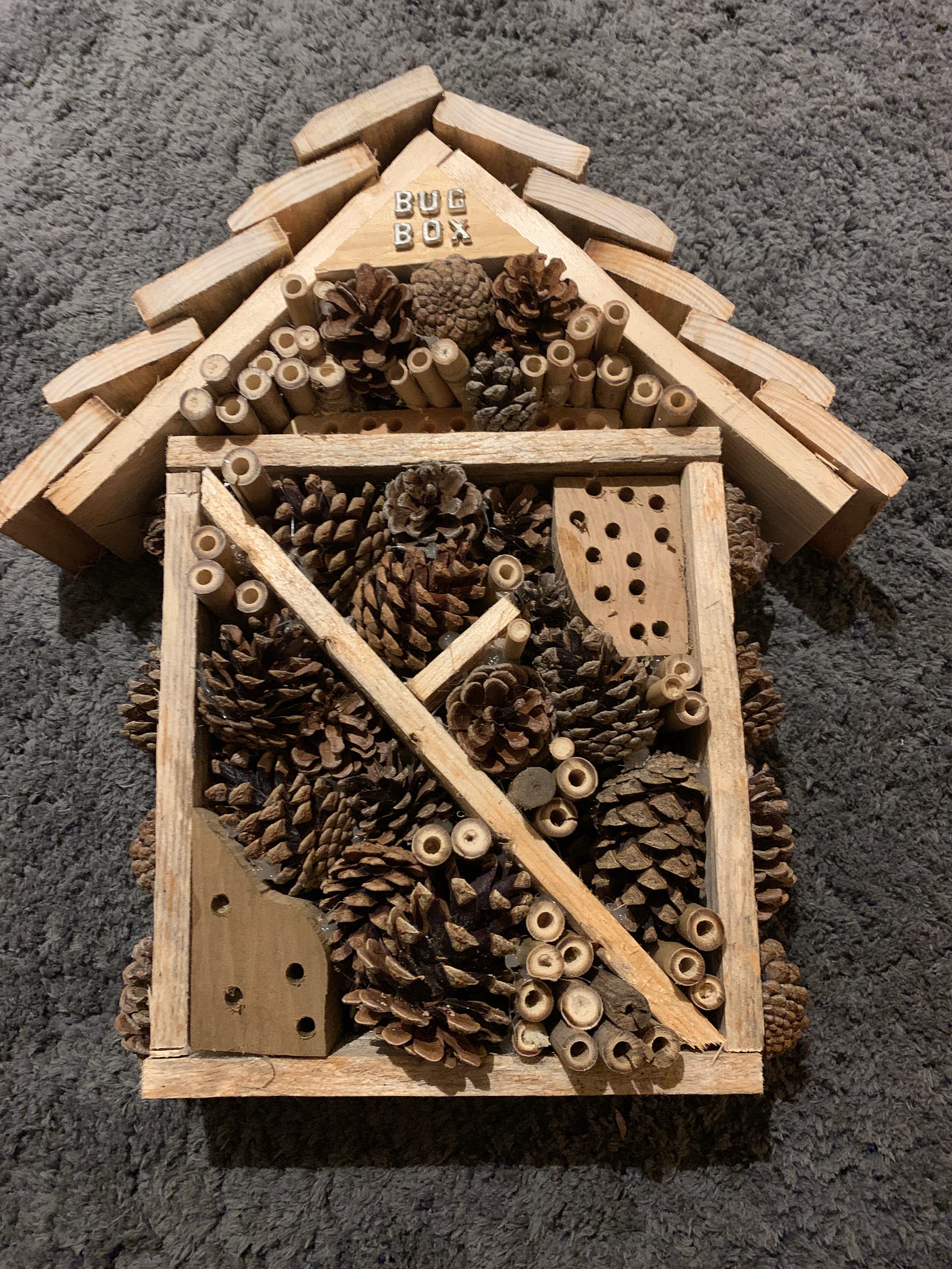 As I see the new flower bed - peppered with the tiny seedlings of wildflower bombs I sowed in autumn – my mind flashes forward to spring, and then summer. When this space will be a riot of colour and a nectar heaven for the pollinators. Just in time for them to check out my beautiful new bug box, kindly made for me by a good friend this Christmas.