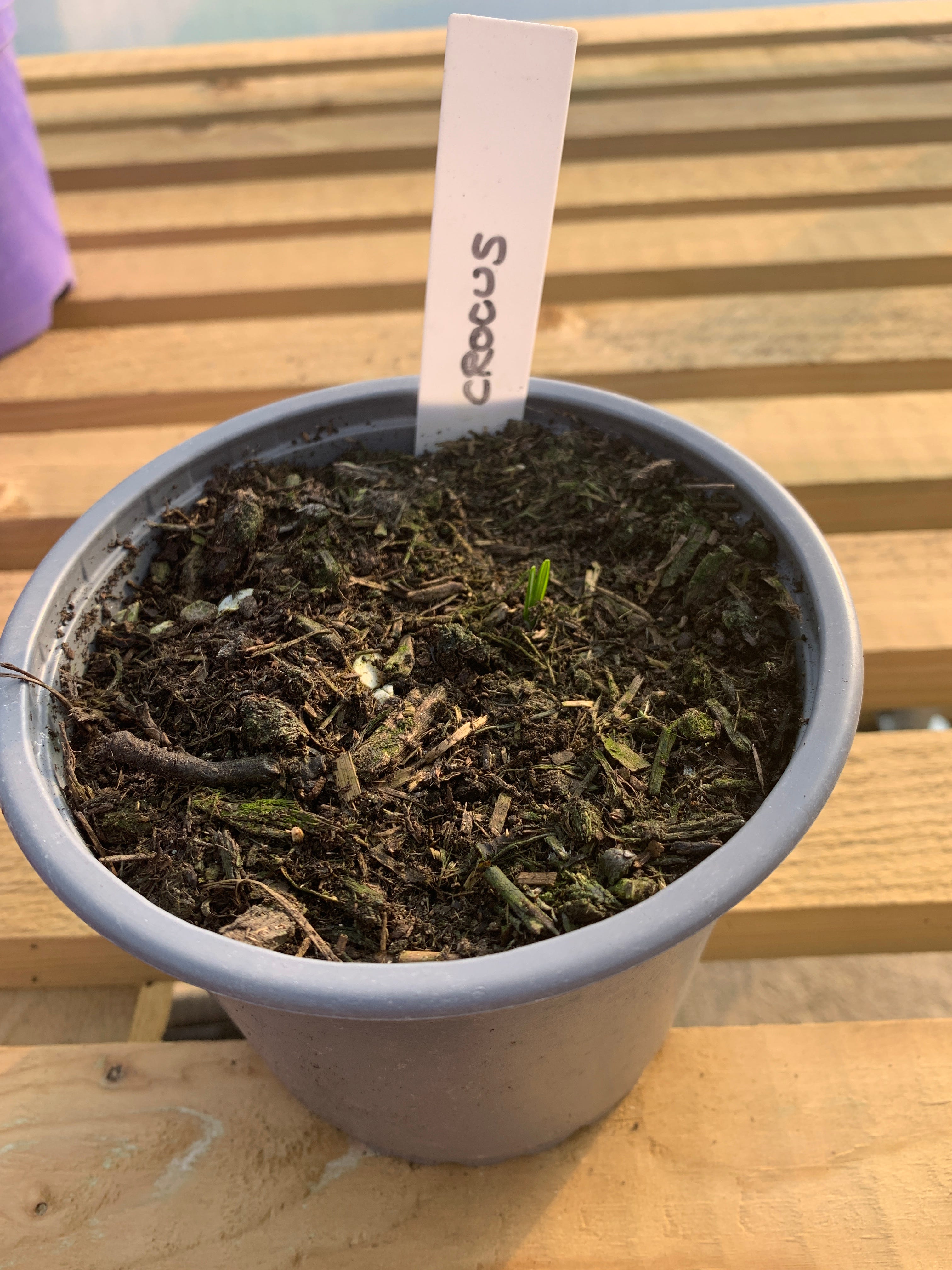Just this week I was about to give up on an ‘empty’ crocus pot. All its companions were in full bloom and already planted out in the garden, but the soil in this little pot was bare. I planned to tip all the soil out and use it for something else, then just today I spotted tiny green shoots breaking through the soil.